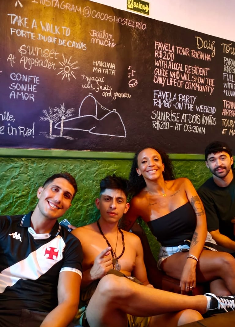 Temos três quartos compartilhados: um feminino e dois mistos. Além disso, contamos com um quarto privativo para até 4 pessoas — ideal para diferentes estilos de viagem.